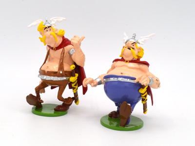 Obélix lancant le mini menhir à Idéfix